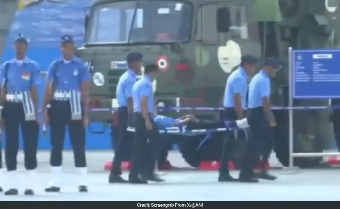 मंगळवारी चेन्नईतील तांबरम एअर फोर्स स्टेशनवर भारतीय हवाई दलाच्या 92 व्या वर्धापन दिनानिमित्त भारतीय हवाई दलाचा एक जवान बेशुद्ध पडला.