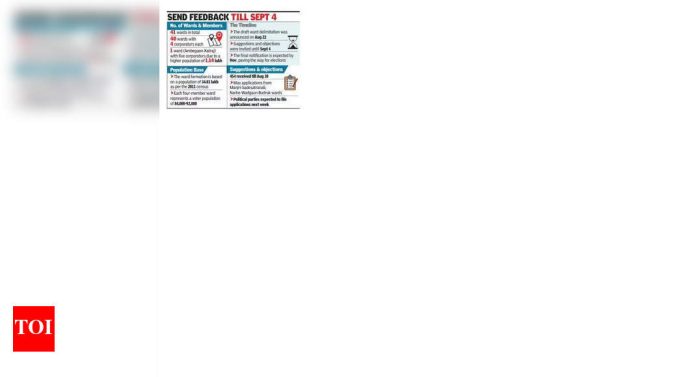 पुणे – आगामी नागरी निवडणुकांपूर्वी सार्वजनिक अभिप्राय आणि आक्षेपांसाठी पीएमसी वॉर्डच्या सीमांचा मसुदा उघडण्याच्या एका आठवड्यात नव्याने विलीन झालेल्या भागातील वॉर्डांकडून नागरी प्रशासनाला सर्वाधिक संख्येने स्मरणशक्ती मिळाली आहे. आतापर्यंत 11 वॉर्डांमध्ये एकही आक्षेप किंवा सूचना प्राप्त झाली नाही.“आतापर्यंत प्राप्त झालेल्या 4 454 च्या सूचना आणि आक्षेपांपैकी 325 विलीनीकरण क्षेत्रातील आहेत,” एका अधिका said ्याने सांगितले. सप्टेंबर 4 ही सूचना आणि हरकती सबमिट करण्याची शेवटची तारीख आहे. राजकीय मंडळाच्या सूत्रांनी सांगितले की, पुढील आठवड्यात पक्ष आक्षेप घेतील. एनसीपी (एसपी) चे शहर युनिटचे प्रमुख प्रशांत जगटॅप म्हणाले की, त्यांच्या कामगारांकडून आक्षेप घेण्यासाठी समिती स्थापन करण्यात आली होती, जे पुढील आठवड्यात अर्ज सादर करेल. कॉंग्रेसमधील राजकारणी म्हणाले की वॉर्डच्या सीमांच्या मसुद्याबद्दल चर्चा करण्यासाठी नुकतीच बैठका घेण्यात आल्या आणि पक्ष कामगार लवकरच निवडणूक आयोग आणि नागरी प्रशासनाकडे आक्षेप पत्र सादर करतील.आतापर्यंत प्राप्त झालेल्या आक्षेपांपैकी, जास्तीत जास्त नव्याने कोरलेल्या मंजरी बुड्रुक-सादसत्रनाली वॉर्ड मर्यादेचे आहे. एका सूत्रांनी सांगितले की, “तब्बल १44 आक्षेप प्राप्त झाले आहेत. प्रभागातील अचानक विभागणी आणि या प्रभागात खारादी येथून काही भागांच्या समावेशाबद्दल हरकती उपस्थित केली गेली आहेत,” असे एका सूत्रांनी सांगितले.नारे-वडगाव बुड्रुक हा आणखी एक प्रभाग आहे जो विलीन झालेल्या क्षेत्राचा समावेश करतो आणि आतापर्यंत 153 आक्षेप नोंदविला आहे. “प्रभाग नकाशाचा निर्णय घेताना नैसर्गिक सीमांच्या खालील अपयशास संबंधित आक्षेप उपस्थित केले गेले आहेत,” असे एका स्थानिक राजकीय कार्यकर्त्याने सांगितले.एनसीपीच्या एका राजकारणी म्हणाले की, बरेच राजकीय कामगार गणेशोत्सव कामांमध्ये व्यस्त होते आणि लवकरच या कामगारांकडून या आक्षेपांचा उपक्रम राहील अशी अपेक्षा होती. “पुणे स्टेशन-जयजावन्नगर वॉर्डशी संबंधित सुमारे २० आक्षेप उपस्थित करण्यात आले आहेत. येरवडाच्या काही भागात या प्रभागात समावेश करण्यात आला आहे, ज्यामुळे स्थानिक नेते आणि त्या भागातील माजी नगरसेवकांना आश्चर्य वाटले आहे,” असे सूत्रांनी सांगितले.नागरी प्रशासनाने गेल्या आठवड्यात आगामी नागरी मतदानासाठी 41 वॉर्डांचे नकाशे जाहीर केले होते. या वॉर्डमधून तब्बल 165 नगरसेवक निवडले जातील. चाळीस वॉर्डात प्रत्येकी चार नगरसेवक असतील, तर एका प्रभागात पाच नगरसेवक असतील.ग्राफिकवॉर्ड आणि सदस्यांची संख्याएकूण 41 वॉर्डप्रत्येकी 4 नगरसेवकांसह 40 वॉर्ड१.१14 लाख लोकसंख्येमुळे पाच नगरसेवकांसह १ वॉर्ड (