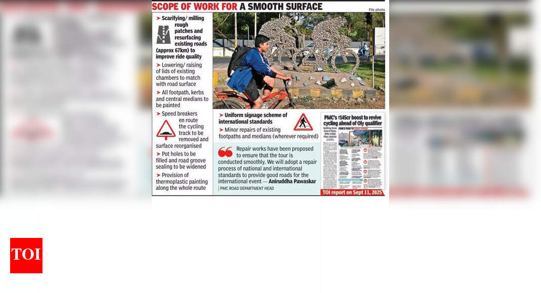 पुणे – नागरी संस्था सुमारे 200 वेगवान ब्रेकर्स काढून टाकेल आणि 400 ड्रेनेज चेंबरच्या खराब झालेल्या झाकणांची दुरुस्ती पुढील दोन महिन्यांत 684 किलोमीटरच्या पुणे ग्रँड चॅलेंज टूरच्या तयारीसाठी जानेवारी 2026 मध्ये होणार आहे आणि लॉस एंजेलस ऑलिम्पिक 2028 साठी पात्र ठरली आहे.हा कार्यक्रम पुणेच्या स्पोर्टिंग कॅलेंडरमधील एक महत्त्वाचा टप्पा असेल आणि टूर डी फ्रान्सच्या धर्तीवर युनियन सायकलिस्ट इंटरनेशनल (यूसीआय) यांनी मान्यता दिली आहे.सायकलिंग पायाभूत सुविधा सुधारण्यासाठी पुणे नगरपालिका महामंडळाने (पीएमसी) आधीच १4545 कोटी रुपये मान्यता दिली होती आणि त्यामधून अंदाजे lakh० लाख रुपये या प्रकल्पासाठी वापरले जातील. या कार्यक्रमासंदर्भात एका सादरीकरणात पत्रकारांशी बोलताना नागरी रस्ता विभागाचे प्रमुख अनिरुद्ध पावस्कर म्हणाले, “हा कार्यक्रम सुरळीत झाला आहे याची खात्री करण्यासाठी काम प्रस्तावित केले गेले आहे. जागतिक कार्यक्रमासाठी चांगले रस्ते प्रदान करण्यासाठी आम्ही राष्ट्रीय आणि आंतरराष्ट्रीय मानकांची दुरुस्ती प्रणाली स्वीकारू.“प्रकल्पांची अंमलबजावणी वेळेवर आणि उच्च प्रतीची आहे याची खात्री करण्यासाठी पीएमसीने कठोर कोमल अटींची रूपरेषा दर्शविली असल्याचे नागरी अधिका officials ्यांनी सांगितले. लक्ष केंद्रित अंमलबजावणी सुनिश्चित करण्यासाठी प्रत्येक कंत्राटदाराने फक्त एक प्रकल्प वाटप केला जाईल. 60 दिवसांच्या अंतिम मुदतीच्या पलीकडे असलेल्या कोणत्याही विलंबासाठी दिवसाचे 50,000 रुपये दंड आकारला जाईल. याव्यतिरिक्त, पीएमसी पाच वर्षांच्या नोंदणीतून डीफॉल्ट कंत्राटदारांना ब्लॅकलिस्ट करेल.कंत्राटदारांना पीएमसीच्या मर्यादेच्या 35 कि.मी.च्या अंतरावर गरम मिक्स बॅच प्रकार प्लांट (कमीतकमी 120 टन प्रति तास उत्पादन क्षमता असलेल्या) कंत्राटदारांच्या मालकीची आणि ऑपरेट करणे हे प्रशासन कराराच्या अटींमध्ये अनिवार्य करेल. कंपन्यांकडे मूलत: कमीतकमी दोन पेव्हर्स, दोन बिटुमेन वितरक, चार व्हायब्रेटरी रोलर्स आणि प्रति पॅकेज एक मिलिंग मशीन असणे आवश्यक आहे. तंतोतंत उतार आणि ग्रेड नियंत्रण सुनिश्चित करण्यासाठी बिटुमिनस कॉंक्रिटचे काम स्ट्रिंगलाइन आणि सेन्सर-नियंत्रित उपकरणे वापरून केले जाणे आवश्यक आहे.पावस्कर म्हणाले, “कोणतेही देय देण्यापूर्वी पीएमसी मानक ऑपरेटिंग प्रक्रियेनुसार राइडच्या गुणवत्तेची चाचणी घेईल. सुरक्षा सल्लागाराची पूर्व-आणि कार्य-नंतरची सुरक्षा ऑडिट दोन्ही आयोजित केली जाईल.”ते म्हणाले की या कामांना 10 वर्षांचा दोष देय दायित्व कालावधी (डीएलपी) देण्यात आला आहे. तथापि, मिशन 15 रस्त्यांप्रमाणेच, प्रशासनाने तीन वर्षांत या रस्त्यावर काम खोदण्यास परवानगी दिली त