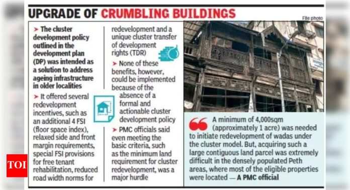पुणे: सुमारे आठ वर्षांपूर्वी प्रस्तावित, शहरातील जुने वाडे आणि मोडकळीस आलेल्या इमारतींचा पुनर्विकास करण्याच्या उद्देशाने क्लस्टर डेव्हलपमेंट उपक्रमात अत्यल्प प्रगती झाल्याचे पुणे महापालिकेच्या (पीएमसी) आकडेवारीतून समोर आले आहे.52 गृहनिर्माण सोसायट्या आणि 800 हून अधिक सदनिका असलेल्या लोकमान्यनगर येथील रहिवाशांच्या विरोधानंतर हा मुद्दा पुन्हा चर्चेत आला आहे. 1960 च्या दशकात बांधल्या गेलेल्या यापैकी अनेक इमारती आता जुन्या पायाभूत सुविधांशी झुंजत आहेत – भेगा पडलेल्या भिंती, अनियमित पाणीपुरवठा आणि खराब ड्रेनेज सिस्टीम ही सामान्य समस्या आहेत.कसबा पेठचे आमदार हेमंत रासणे म्हणाले, क्लस्टर डेव्हलपमेंटला प्रतिसाद मिळत नसल्याने अनेक मालमत्तांचे नुकसान होत आहे. मालमत्ता लढाईत अडकल्यास किंवा वर्षानुवर्षे दुर्लक्षित राहिल्यास सक्तीच्या अधिग्रहणासारखे पर्याय शोधले पाहिजेत. भूखंड आकाराची किमान आवश्यकता सुमारे 1000sqm असावी.” पेठ परिसरातील रहिवासी अभय जोशी म्हणाले की, मोडकळीस आलेल्या इमारतींमध्ये राहणारे अनेक रहिवासी, विशेषत: भाडेकरू हे आर्थिकदृष्ट्या दुर्बल घटकातील आहेत. “काहींना इतरत्र भाड्याने घरे देणे परवडत नाही. धोरणकर्त्यांनी वृद्धत्वाच्या मालमत्तांच्या पुनर्बांधणीला गती देण्यासाठी सक्रिय पावले उचलली पाहिजेत,” ते पुढे म्हणाले.पीएमसीच्या बांधकाम परवानगी विभागाचे वरिष्ठ अधिकारी अमोल बहाडकर म्हणाले की त्यांनी गर्दीच्या ठिकाणांसाठी क्लस्टर डेव्हलपमेंटचे फायदे अधोरेखित करण्यासाठी जनजागृती मोहीम राबवली आहे. “तथापि, अद्यापपर्यंत पीएमसीकडे कोणतेही औपचारिक प्रस्ताव सादर केलेले नाहीत. त्याऐवजी, लहान मालमत्तांचे मालक वैयक्तिक बांधकाम परवानग्या मागत आहेत,” ते पुढे म्हणाले.एकाच पुनर्विकास योजनेंतर्गत अनेक वाड्यांचे एकत्रीकरण करण्यात अडचण येत असल्याचे नागरी अधिकाऱ्यांनी मान्य केले. “सर्व मालक आणि भाडेकरूंकडून संमती मिळवणे आव्हानात्मक आहे आणि अनेक मालमत्ता कायदेशीर वादात अडकल्या आहेत. क्लस्टर डेव्हलपमेंट पॉलिसीच्या मध्यवर्ती असलेल्या एकाच परिसरातील अनेक वाडे पाडून जमीन एकत्र करणे हे एक कठीण काम असल्याचे सिद्ध होत आहे,” असे आणखी एका अधिकाऱ्याने सांगितले.अधिकारी म्हणाले, “पीएमसी युनिफाइड डेव्हलपमेंट कंट्रोल अँड प्रमोशन रेग्युलेशन (यूडीसीपीआर) अंतर्गत क्लस्टर पुनर्विकासाला चालना देत आहे. परंतु भाडेकरू आणि मालक यांच्यातील मतभेद महत्त्वपूर्ण अडथळे निर्माण करत आहेत. आम्ही जागरूकता वाढवण्यासाठी आणि उपक्रमाभोवती एकमत निर्माण करण्यासाठी काम करत आहोत.मोडकळीस आलेल्या इमारतींचे अपग्रेडेशन विकास आराखड्यात (डीपी) वर्णन केलेल्या 