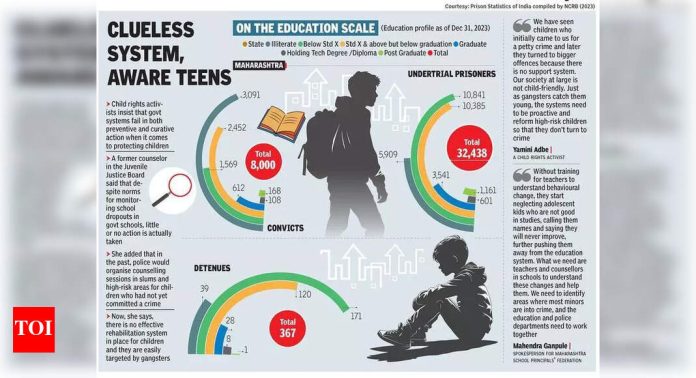 18 पर्यंत पोहोचलेल्या किशोरवयीन मुलांची संख्या हिंसक गुन्ह्यांमध्ये गुंतलेली आहे. ते देखील शाळा सोडलेले आहेत आणि वर्गातील समस्यांसह आणि मोठ्या, वाईट बाहेरील जगाच्या मोहाचा प्रतिकार करू शकत नसल्यामुळे ते पुन्हा शिक्षणाकडे जाण्याची शक्यता नाही.“आम्ही शाळेत जातो. शिक्षक छान नसतात. जर आम्ही उत्तर देऊ शकलो नाही किंवा आमचे काम पूर्ण केले नाही, तर ते आम्ही ज्या निगडी ओटा योजनेतून आलो आहोत त्याची ते खिल्ली उडवतात. आम्हाला ते आवडत नाही,” 15 वर्षीय त्याच्या मित्रांमध्ये रील बनवण्याच्या कौशल्यासाठी ओळखल्या जाणाऱ्या तरुणाने सांगितले.गुन्ह्यातील अल्पवयीन मुलांशी व्यवहार करणाऱ्या पोलिस अधिकाऱ्यांनी सांगितले की ते सिद्ध करण्यासाठी कोणताही अभ्यास नाही परंतु त्यांच्या निरीक्षणानुसार अटक करण्यात आलेले 80% पेक्षा जास्त अल्पवयीन हे एकतर शाळा सोडलेले किंवा अनियमित विद्यार्थी आहेत.राज्याच्या शिक्षण विभागाची आकडेवारी धक्कादायक आहे. माध्यमिक शाळेतील विद्यार्थ्यांचे गळतीचे प्रमाण यंदा वाढले आहे. शैक्षणिक वर्ष 2024-25 मध्ये, इयत्ता IX आणि X मध्ये 12.6% मुले आणि 10.3% मुलींनी प्रवेश सोडला. मागील वर्षीच्या तुलनेत तो एक टक्क्याने जास्त होता. वास्तविक संख्या आणखी जास्त असू शकते.कायद्याच्या विरोधात असलेल्या मुलांचे पुनर्वसन करण्यासाठी पुण्यातील मिशन परिवर्तन या एनजीओचे अध्यक्ष योगेश जाधव यांनी गेल्या दोन वर्षांत अशा 700 हून अधिक मुलांसोबत काम केले आहे. ते म्हणाले, “विद्यार्थी वर्गात राहतील याची नितांत गरज आहे. मुलांमध्ये, विशेषत: इयत्ता आठवी, नववी आणि दहावीमधील मुलांमधील बदल शिक्षकांनी सर्वप्रथम लक्षात घेतले आहेत. जर आपण त्यांना शाळेत ठेवू शकलो आणि त्यांना शिक्षणाद्वारे चांगल्या भविष्याची आशा देऊ शकलो, तर बालगुन्हेगारीचे प्रमाण कमी होईल. त्यासाठी शिक्षक आणि पालकांनी समन्वयाने काम करणे आवश्यक आहे,” ते पुढे म्हणाले.प्रिझन स्टॅटिस्टिक्स ऑफ इंडिया 2023 प्रौढ दोषींमध्ये समान प्रवृत्ती प्रकट करते. 31 डिसेंबर 2023 रोजी महाराष्ट्रातील तुरुंगांमध्ये शिक्षा झालेल्या 8,000 कैद्यांपैकी 3,091 इयत्ता दहावी पूर्ण होण्यापूर्वीच सोडून गेले आणि 1,569 निरक्षर होते. अंडरट्रायल कैद्यांमध्ये हा कल अधिक आहे. 32,438 अंडरट्रायलपैकी 10,841 इयत्ता दहावीपूर्वी बाहेर पडले, तर 5,909 निरक्षर आहेत.स्लाइड शांतपणे सुरू होते. “मी शाळेत नियमित होतो, पण माझ्या मित्राने इयत्ता दहावीनंतर शिक्षण सोडले. आम्ही काही वर्षांनी मोठ्या असलेल्या स्थानिक भाऊ आणि त्याच्या मित्रांसोबत फिरायला लागलो. मी आणि दुसरा मुलगा वगळता, सर्वांनी शाळा सोडली,” दोन वर्षांपूर्वी कलम ३९५ आयपीसी अंतर्गत गुन्हा दाखल करण्यात आलेल्या बारावीच्या विद्या