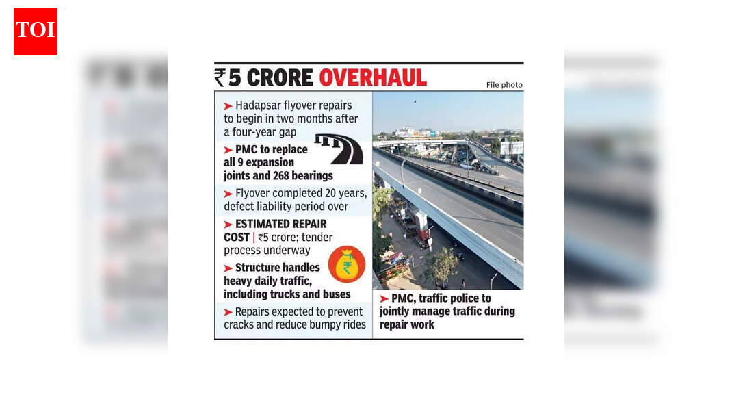 पुणे : हडपसर उड्डाणपुलाची चार वर्षानंतर दुरुस्ती करण्याची पुणे महापालिकेची योजना असून, दोन महिन्यांनंतर काम सुरू होण्याची शक्यता आहे.प्रशासनाने २०२२ मध्ये उड्डाणपुलाच्या काही भागांची तातडीने दुरुस्ती केली होती. आता, संपूर्ण संरचना मजबूत करण्यासाठी सर्व नऊ विस्तार सांधे आणि 268 बेअरिंग्ज बदलण्याची योजना आहे.पीएमसी अधिकाऱ्यांनी सांगितले की, उड्डाणपुलाला २० वर्षे पूर्ण झाली आहेत आणि दोष दायित्व कालावधी संपला आहे. ते म्हणाले की योजनेची अलीकडेच स्ट्रक्चरल ऑडिटर्सशी चर्चा करण्यात आली होती, ज्यांनी दुरुस्तीची शिफारस केली होती. नागरी प्रशासनाने या कामांसाठी सुमारे 5 कोटी रुपये खर्चाचा अंदाज व्यक्त केला आहे आणि योजनेची अंमलबजावणी करण्यासाठी तज्ञ एजन्सीची नियुक्ती करण्यासाठी निविदा प्रक्रिया सुरू केली आहे.हडपसर उड्डाणपुलावरून दररोज जड ट्रक आणि बससह शेकडो वाहने जातात. ही रचना सोलापूर रस्त्यावरील दुतर्फा वाहतुकीची व्यवस्था करते, तर हडपसरहून सासवड रोडकडे जाणाऱ्या वाहनांसाठी स्वतंत्र विंग आहे. हा उड्डाणपूल शहरात बांधण्यात येणाऱ्या पहिल्या पुलांपैकी एक आहे. ही सुविधा महत्त्वाची आहे कारण यामुळे हडपसर चौकात वाहनांना थांबण्याची गरज नाही. तसेच हडपसर गावठाणात प्रवाशांना गर्दीचा सामना करावा लागत नाही.PMC च्या एका अधिकाऱ्याने सांगितले, “आगामी कामांमुळे उड्डाणपुलाला बळकटी मिळेल आणि खड्डे पडण्यास प्रतिबंध होईल. एकंदर अनुभवातही सुधारणा होईल कारण प्रवाशांना स्पॅन जॉइंट्सवर खडबडीत राइड्सचा सामना करावा लागणार नाही. दुरुस्ती सुरू असताना नागरी संस्था वाहतूक पोलिसांसोबत वाहनांच्या व्यवस्थापनासाठी संयुक्त योजना तयार करेल.”हडपसर आणि सासवड रस्त्यांच्या नियमित वापरकर्त्यांनी सांगितले की 2022 मध्ये काम करताना त्यांना मोठ्या गैरसोयीचा सामना करावा लागला होता. हा उड्डाणपूल अवजड वाहनांसाठी अचानक बंद करण्यात आल्याने हडपसर व परिसरातील रस्त्यांवर दीर्घकाळ वाहतूक कोंडी झाली होती. यावेळी अधिकाऱ्यांनी असे प्रसंग टाळावेत, असे ते म्हणाले.महाराष्ट्र राज्य रस्ते विकास महामंडळाने हा उड्डाणपूल बांधला होता, तो पीएमसीच्या देखरेखीखाली आहे. दरम्यान, कार्यकर्ते अमित गायकवाड म्हणाले, “शहरातील रस्ते आणि उड्डाणपुलांच्या देखभालीसाठी पीएमसी पुरेशी पावले उचलत नाही. योग्य देखभाल न केल्याने अनेकदा लवकर नुकसान होते. पीएमसीने राबविलेल्या सर्व पायाभूत सुविधांच्या कामांचे थर्ड पार्टी ऑडिट करण्याची गरज आहे.”हडपसरचे रहिवासी आशिष माटे म्हणाले की, हडपसर उड्डाणपुलाबरोबरच पीएमसीने मगरपट्टा चौकाजवळील उड्डाणपुलाचीही पुनर्रचना करावी, जेणेकरून वाहतूक सुरळीत होण्यास मदत हो