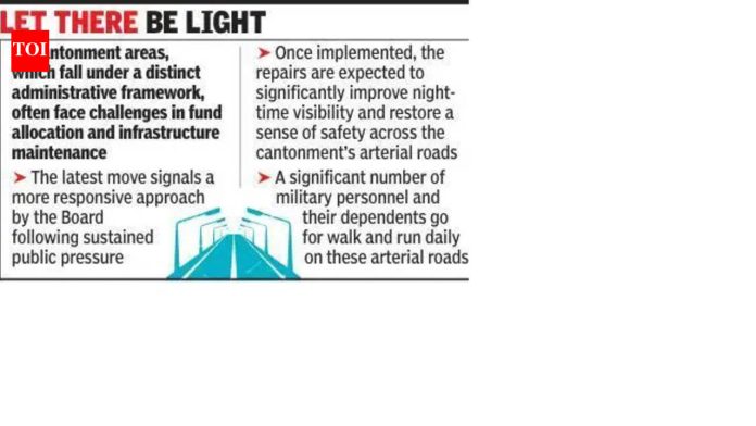 पुणे: पुणे कॅन्टोन्मेंट बोर्डाने (पीसीबी) खराब उजेड असलेले रस्ते आणि सुरक्षेच्या वाढत्या चिंतांबाबतच्या तक्रारींनंतर, खराब झालेले पथदिवे दुरुस्त करण्यासाठी अधिकृतपणे 44 लाख रुपये मंजूर केले आहेत.पीसीबीच्या सोमवारी झालेल्या सर्वसाधारण सभेने या चिंतेचे निराकरण केले आणि सर्वसमावेशक दुरुस्तीचे वेळापत्रक व्यवस्थापित करण्यासाठी एका खाजगी कंपनीला अंतिम रूप दिले.मंडळाच्या विद्युत विभागाने केलेल्या अंतर्गत सर्वेक्षणात असे समोर आले आहे की, गेल्या दोन वर्षांत एकूण 5,000 पैकी सुमारे 900 पथदिव्यांचे फिटिंग खराब झाले आहे.अधिका-यांनी कबूल केले की आर्थिक अडचणींमुळे देखभालीचे प्रयत्न मंदावले असले तरीही कार्यरत नसलेल्या दिव्यांची संख्या सातत्याने वाढत आहे. बोर्डाच्या एका वरिष्ठ अधिकाऱ्याने TOI ला सांगितले की, “समस्या अशा टप्प्यावर पोहोचली आहे जिथे ती पुढे ढकलली जाऊ शकत नाही. सुरक्षिततेची चिंता, विशेषत: पादचारी आणि दुचाकीस्वारांसाठी, गंभीर होत आहेत.”पीसीबीचे मुख्य कार्यकारी अधिकारी विद्याधर पवार म्हणाले, “पंधरा दिवसात काम सुरू होईल. पावसाळ्यापूर्वी काम पूर्ण करण्याचा आमचा प्रयत्न असेल.”खराब प्रकाश असलेल्या भागात अपघात आणि चोरीच्या वाढत्या जोखमीकडे लक्ष वेधून रहिवाशांनी या समस्येबद्दल आवाज उठवला होता. कॅन्टोन्मेंटमध्ये तैनात असलेल्या लष्करी कर्मचाऱ्यांनी देखील चिंता व्यक्त केली होती, विशेषत: रात्रीच्या हालचाली दरम्यान दृश्यमानतेबद्दल.“परिस्थिती निराशाजनक होती. अनेक भाग पूर्णपणे अंधारमय होते, ज्यामुळे कुटुंबे आणि वृद्ध रहिवाशांसाठी ते असुरक्षित होते,” एका वरिष्ठ लष्करी अधिकाऱ्याने TOI ला सांगितले.अधिका-यांनी जोडले की इतर बाधित भागात दुरुस्ती करण्यापूर्वी सर्वात व्यस्त आणि सर्वात गंभीर रस्त्यांना प्राधान्य दिले जाईल.रहिवाशांनी या निर्णयाचे स्वागत केले आहे, परंतु ते म्हणतात की वेळेवर अंमलबजावणी करणे महत्त्वाचे असेल. “मंजुरी मिळाल्याने दिलासा मिळाला आहे, पण आता हे काम किती लवकर आणि प्रभावीपणे पूर्ण झाले हे महत्त्वाचे आहे,” असे कॅम्प परिसरातील कार्यकर्ते मुर्तझा पूनावाला यांनी सांगितले.
